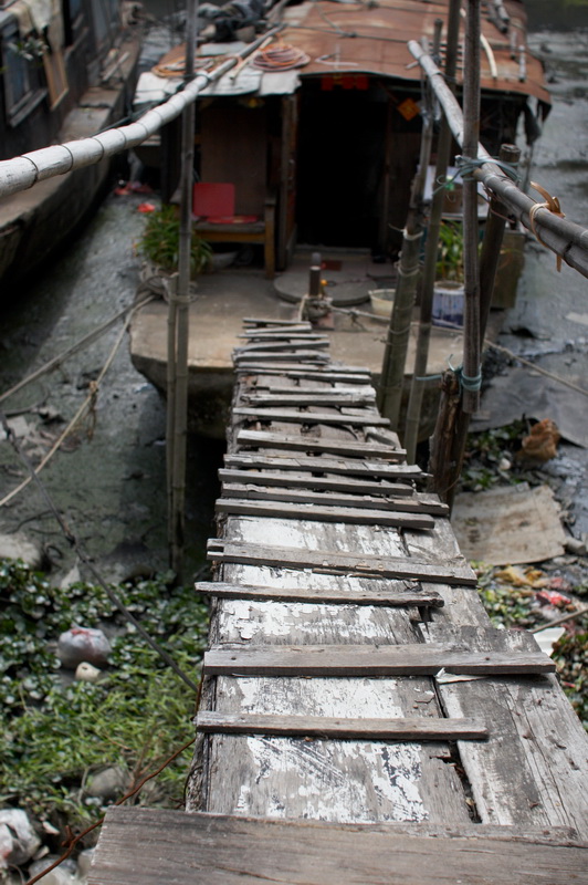 船和路面只有一块木板联系着,也是唯一的出入口。